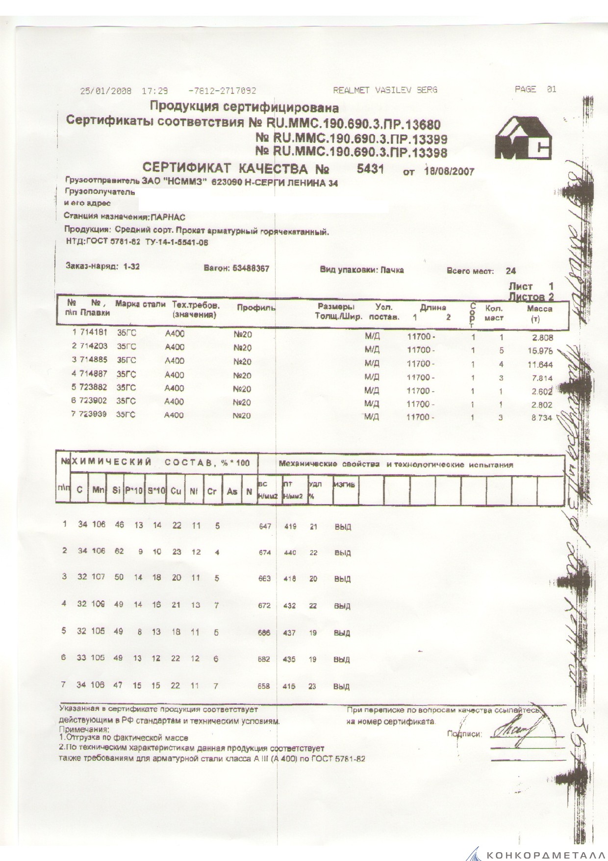 С каждой товарной позицией мы предоставляем все сертификаты и паспорта качества, а также товарно-транспортную накладную.