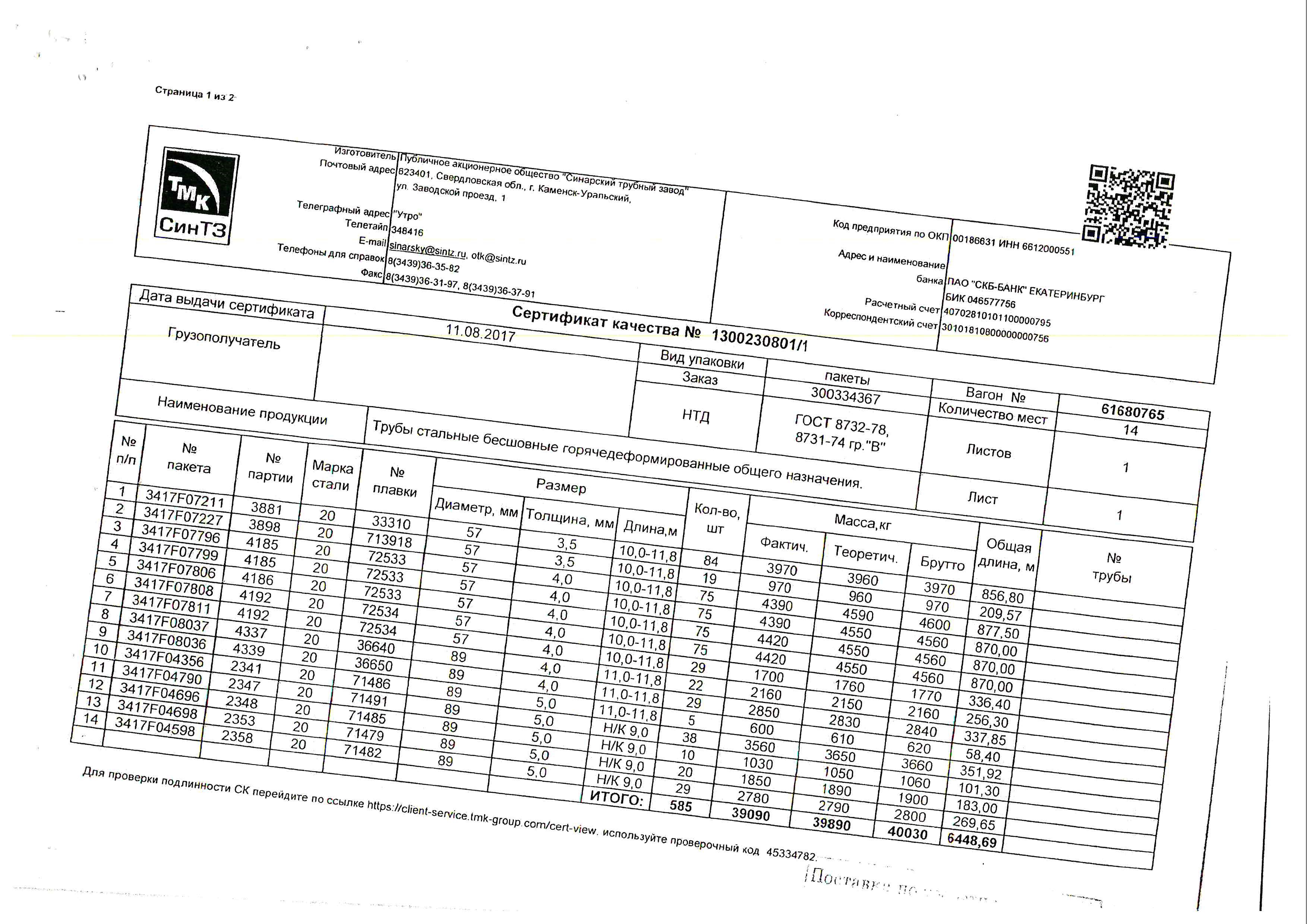 С каждой товарной позицией мы предоставляем все сертификаты и паспорта качества, а также товарно-транспортную накладную.