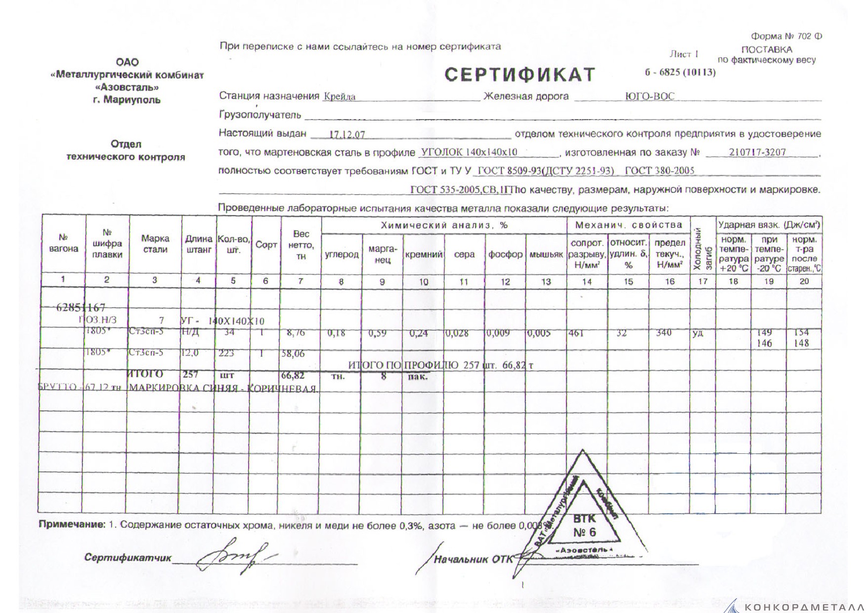 С каждой товарной позицией мы предоставляем все сертификаты и паспорта качества, а также товарно-транспортную накладную.