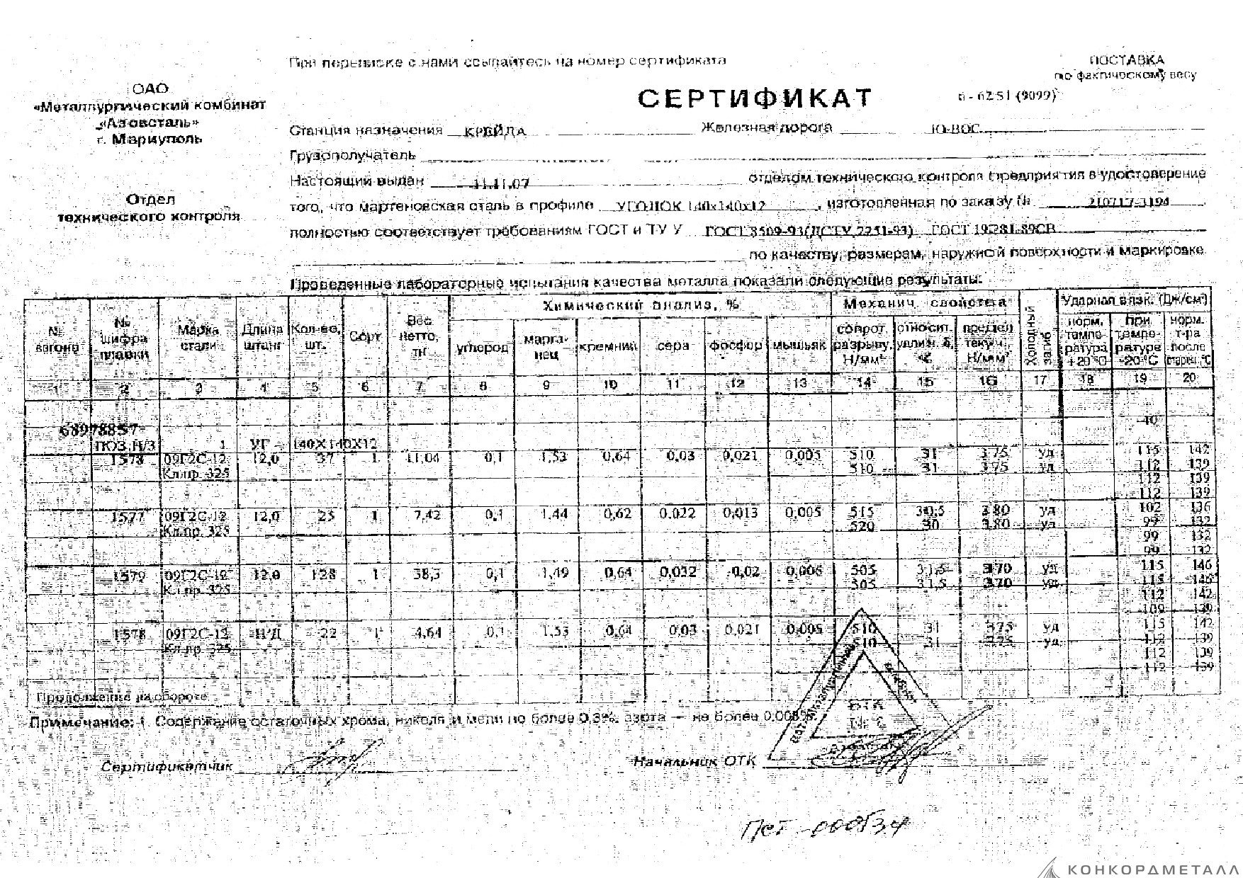 С каждой товарной позицией мы предоставляем все сертификаты и паспорта качества, а также товарно-транспортную накладную.
