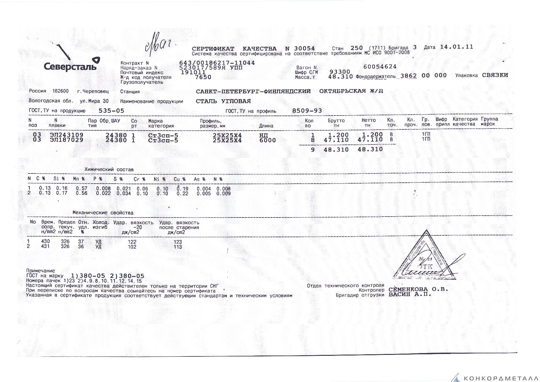 С каждой товарной позицией мы предоставляем все сертификаты и паспорта качества, а также товарно-транспортную накладную.