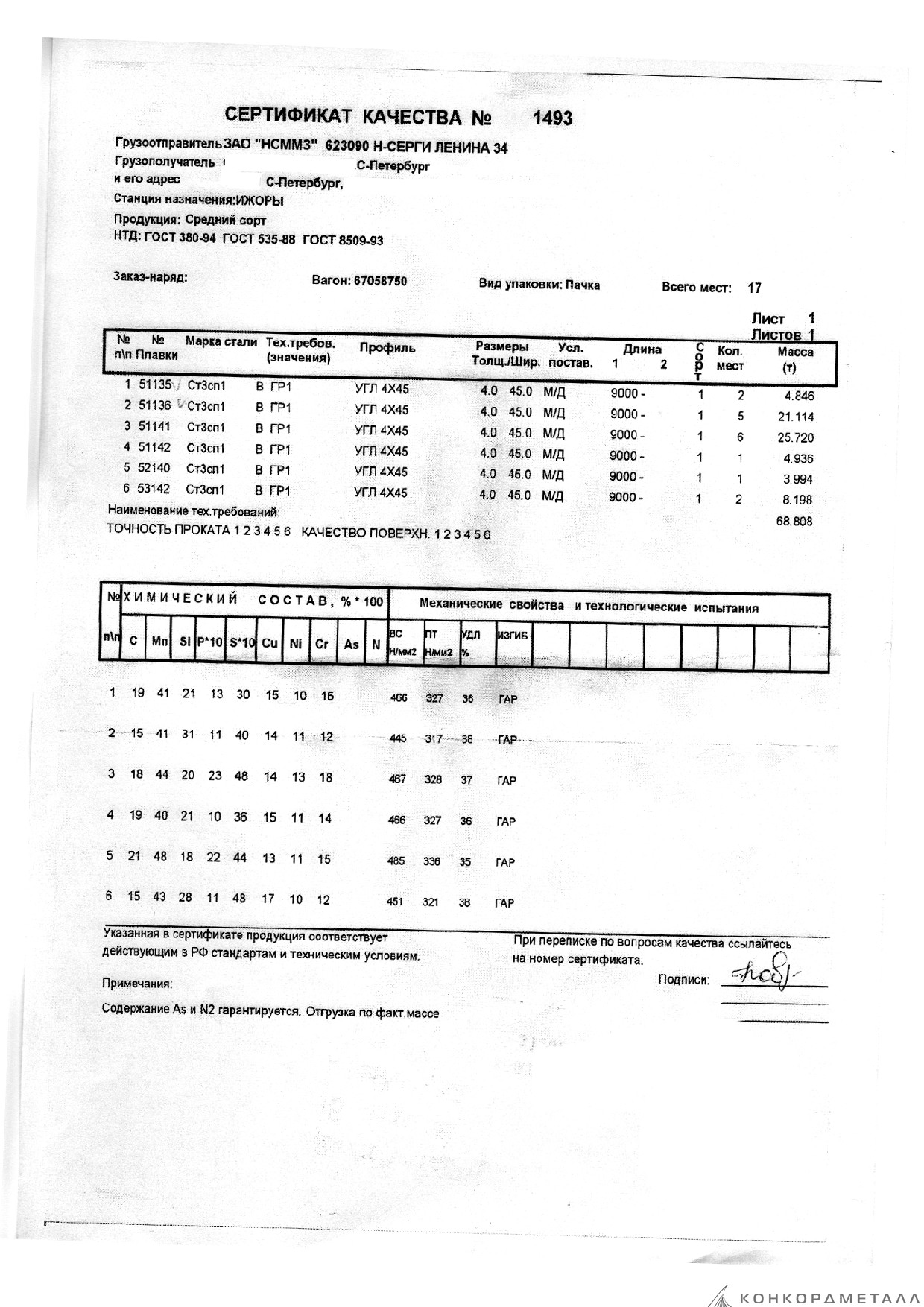 С каждой товарной позицией мы предоставляем все сертификаты и паспорта качества, а также товарно-транспортную накладную.